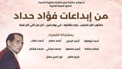 أمسية شعرية بمكتبة مصر العامة بالزاوية الحمراء بعنوان "من إبداعات فؤاد حداد"