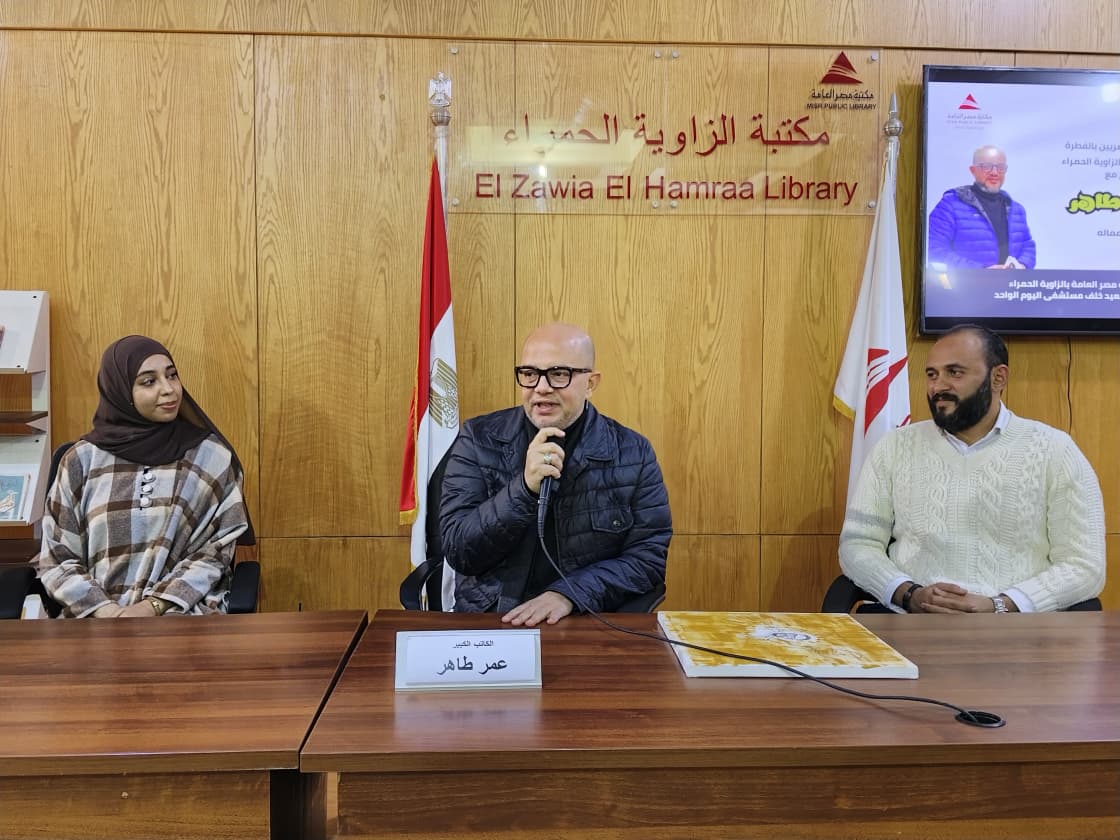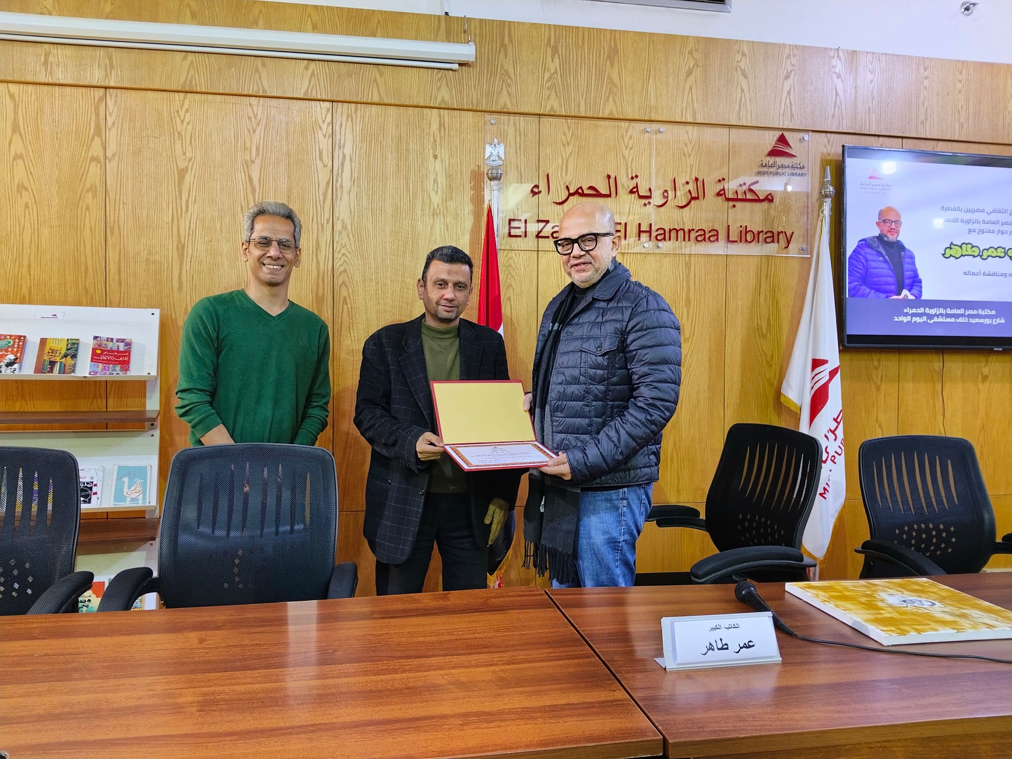 2- ختام فعاليات مبادرة (مصريين بالفطرة) التي أطلقتها المكتبة لترسيخ الهوية المصرية، بتكريم الكاتب عمر طاهر باعتباره أحد الشخصيات المصرية المؤثرة المشغولة بتناول أبعاد الشخصية المصرية في كتاباته واعماله الأدبية.