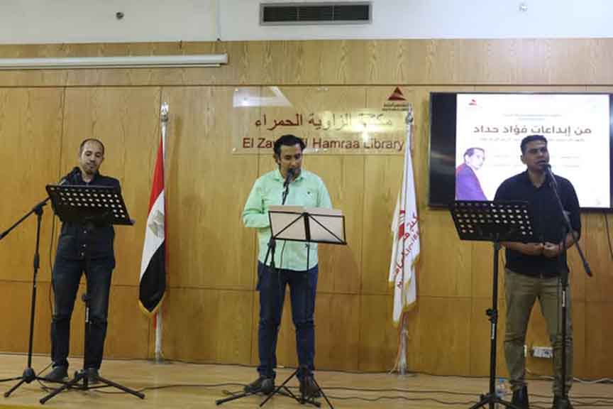 نظمت مكتبة مصر العامة بالزاوية الحمراء أمسية شعرية مميزة بعنوان “من إبداعات فؤاد حداد”، بمشاركة عدد من الشعراء الشباب، منهم: