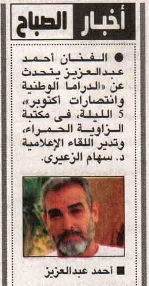أحمد عبد العزيز يروي أسرار الدراما الوطنية في ندوة أكتوبر بمكتبة مصر العامة بالزاوية الحمراء