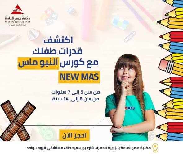 كما سوف يتم استقبال طلبات التسجيل مباشرة من خلال قسم الأنشطة بالدور الثاني بمقر المكتبة، الكائن في شارع بورسعيد خلف مستشفى جراحات اليوم الواحد.