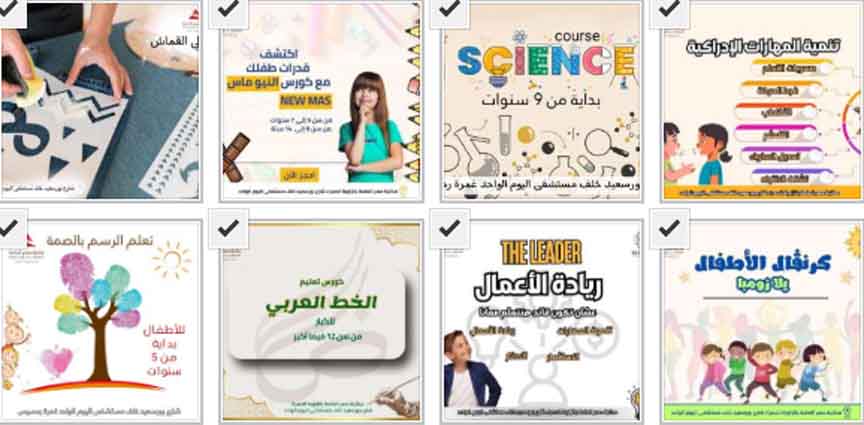 نشاط تحسين الخط العربي (للأطفال والكبار) – الرسم – الحلي – الكروشيه – التفصيل والخياطة – الإميجرومي – التطريز – البانش نيدل – التعليق الصوتي والدوبلاج – التصوير الفوتوغرافي – المكرمية – الفاشون ديزاين.