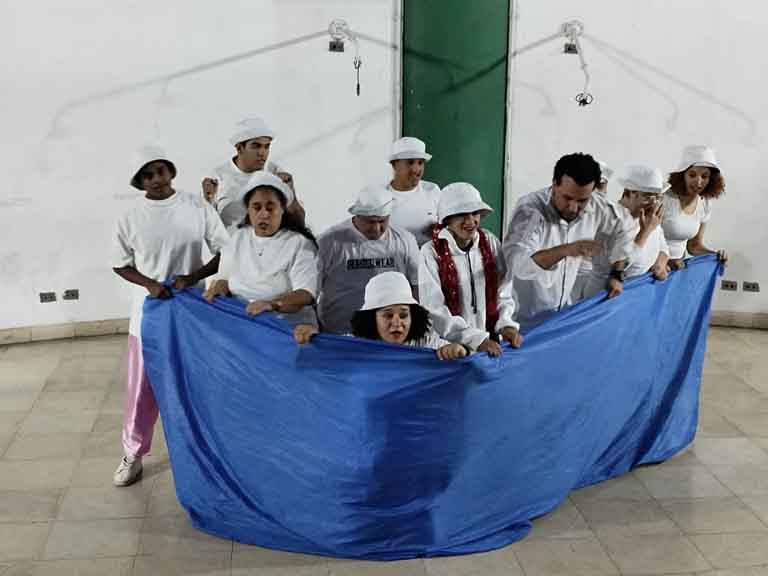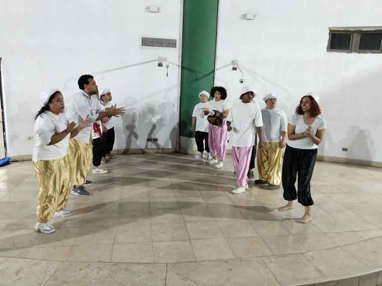 تألق أبطال العرض الفني الدامج “أرض الزوامل” في تجربة مسرحية تمزج بين الإبداع والإنسانية والبهجة.